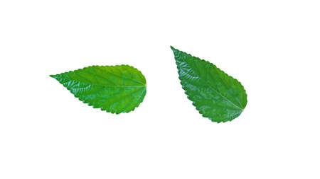 Fresh green leaf on a white background. Flat lay. Nature concept.