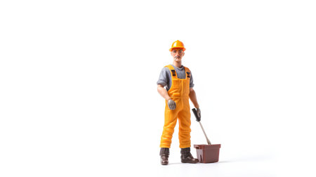 Construction Worker Holding Constructing Equipment Tools on Isolated Background. Carpenter Man Builder Real Estate Jobs Occupation, Business Engineering Industry and Building Development Concept.