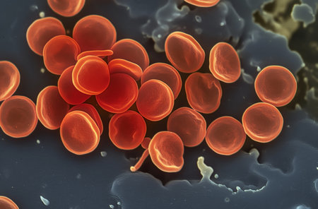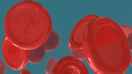 Red blood cells move through a human bloodstream delivering oxygen and maintaining health in a close up view showcasing their unique shape.