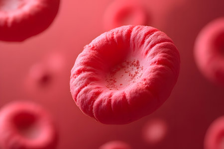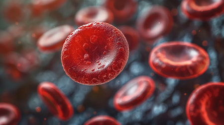 Stunning and depicting detailedion of red blood cells gracefully flowing through the bloodstream, showing their intricate structure and dynamic motion