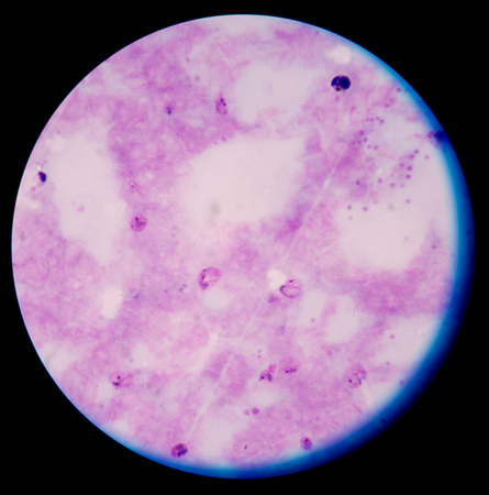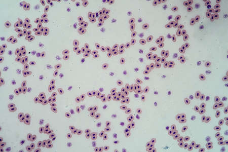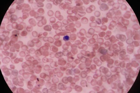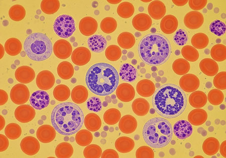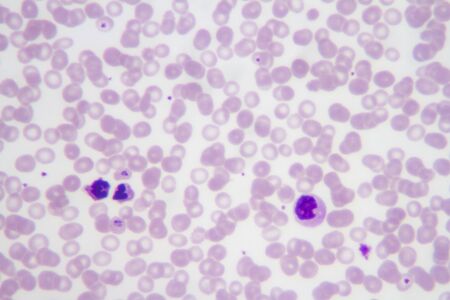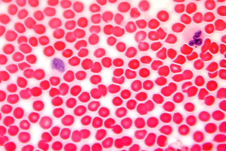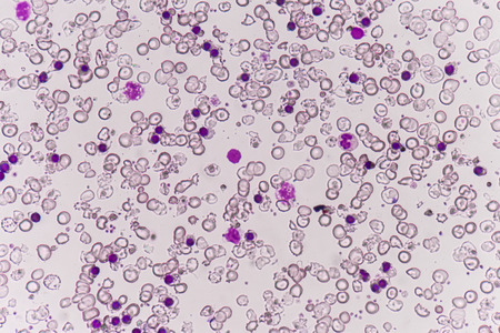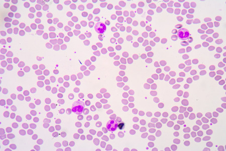 White blood cells of a human, photomicrograph panorama as seen under the microscope