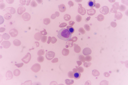 Abnormal red blood cells in Blood smear Thalassemia patient.