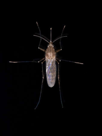 Mosquito full of blood on a black background. Close-up macro shot of an insect