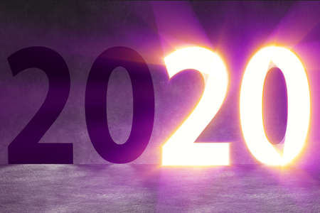 violet/purple scene 2020 abstract type/text number 3d rendering