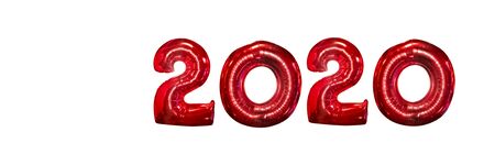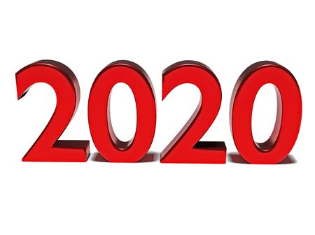Red numbers of New Year 2020 with shadow. 3d render