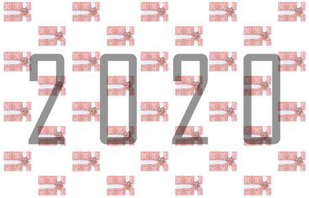 new year two thousand and twentieth year 2020, text numbers from red font with a transparent effect on a tinted background pattern giftbox festive decor