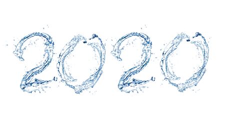 Happy New Year 2020 by Pure splash of water isolated on white background
