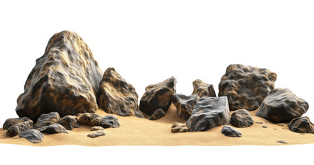 Desert landscape with big stones isolated on white background