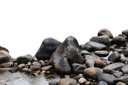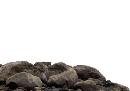 Heap of dark stones isolated on white background.
