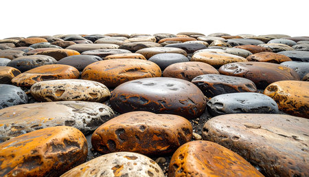 A simple isolated pile of rocks showcasing diverse textures and colors on a pristine white background. Ideal for nature and design themes.