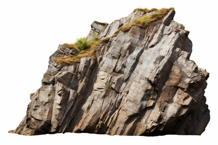 Rock mountain slope or top foreground close-up isolated on white background. Element for matte painting, copy space.