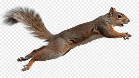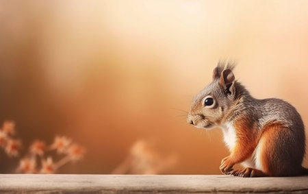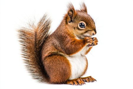 A cute squirrel sits upright with its fluffy tail curling behind. This charming animal embodies playfulness and curiosity, perfect for nature-themed projects.