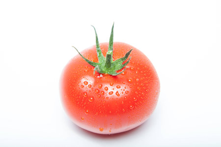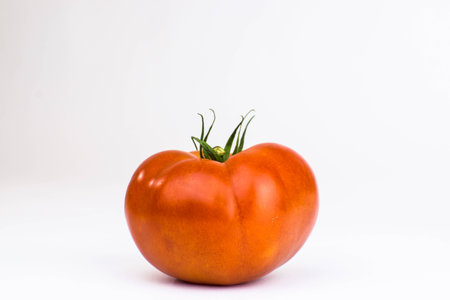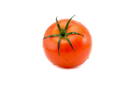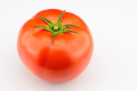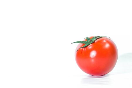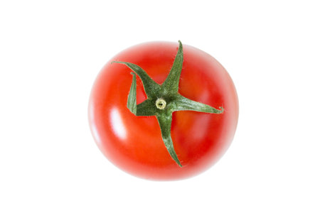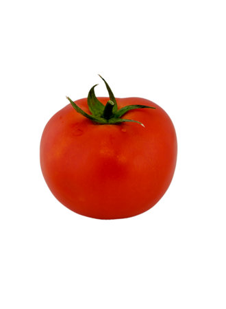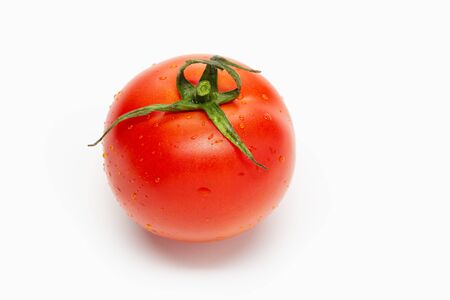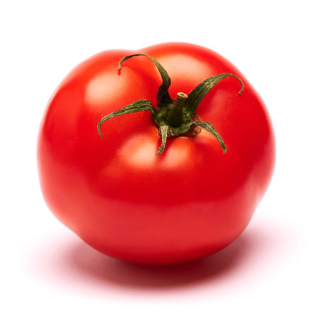 Fresh ripe red tomato isolated on clean white background. Perfect healthy organic vegetable food photo for advertising, packaging, and design.