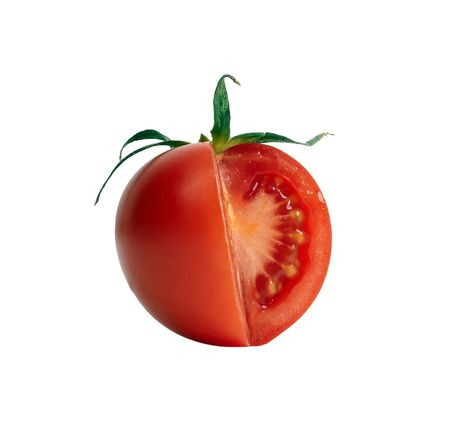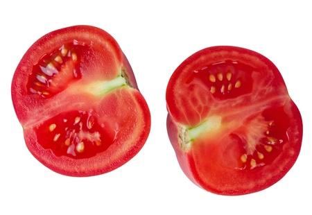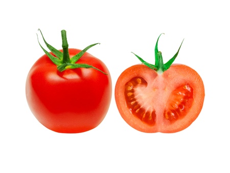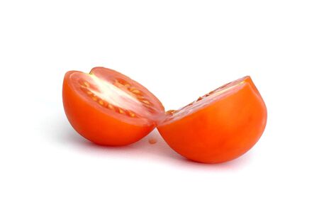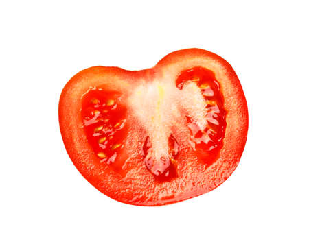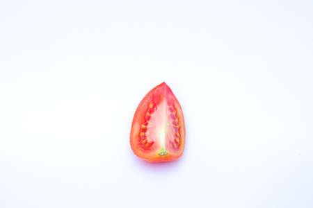 A half cut tomato isolated with a white background. Fresh healthy food, lifestyle concept, background.