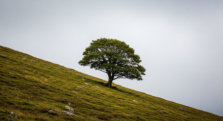 Lonely tree on a hillside in the Pyrenees