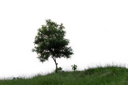 Big and high tree on the hill isolated on white background