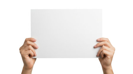 Hand holding a blank white card