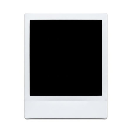 A classic white instant photo frame with a completely black center. The image is isolated on a clean white background, perfect for adding custom content.