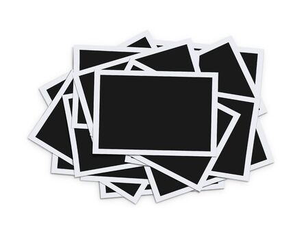 Stack of instant blank photographs isolated on white background