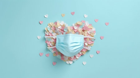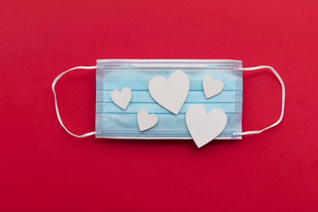 Valentines day background with surgical mask and white love hearts