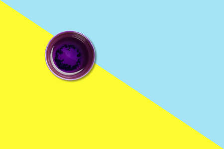 Fresh blueberry tonic on small cup flat lay concept isolated.