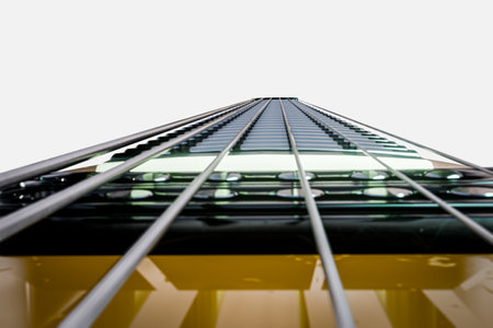 part of the guitar, neck, a grey and black background, beautifully, elegantly
