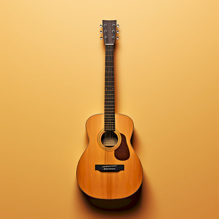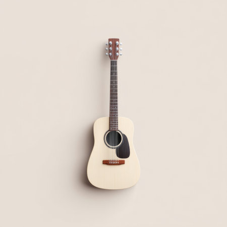 This image features a beautifully crafted acoustic guitar resting against a soft, minimalist background, ideal for music-related projects or artistic displays.