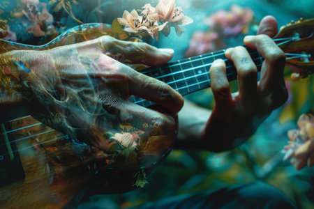 A dreamy ukulele strummed by a phantom hand AI generated