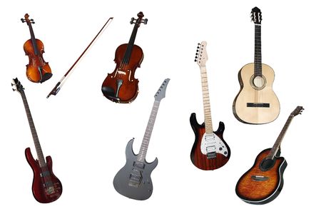 guitares and violines under the white background
