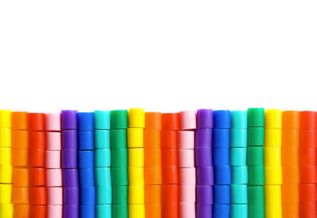 multicolored tubes for cocktails and juices on a white background in a row use for background, with copy space for text
