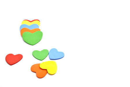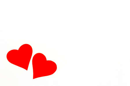 Hand made Red hearts on white background. Valentines Day flat lay.