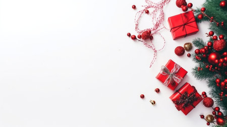 Christmas card elements arranged in a minimalist flat lay composition on white background AI generated illustration