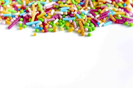 Sugar sprinkles dots on white background, decoration for cake and bakery for happy easter. Isolated on white