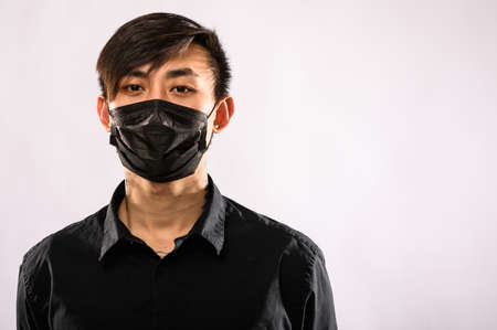 Asian man with medical face mask to protection the coronavirus. Young Asian man living in city with polluted air