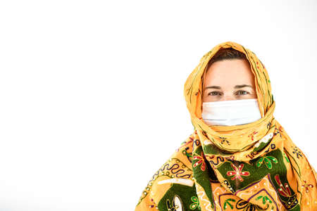 Arab Muslim woman with veil and mask.