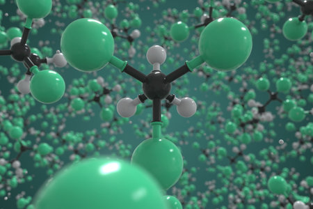 1,1,1-trichloroethane molecule, ball-and-stick molecular conceptual model. Scientific 3d rendering