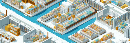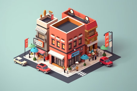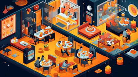 Generative AI Isometric Fast Food Restaurant Interior with Self-Service Terminal. Vector illustration