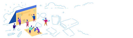 business people calendar strategy planning concept team working together brainstorming sketch doodle horizontal banner vector illustration