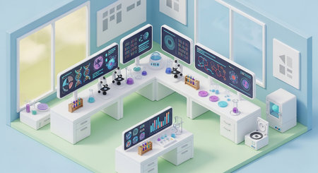 3d isometric medical laboratory interior with equipment and science experiments vector illustration