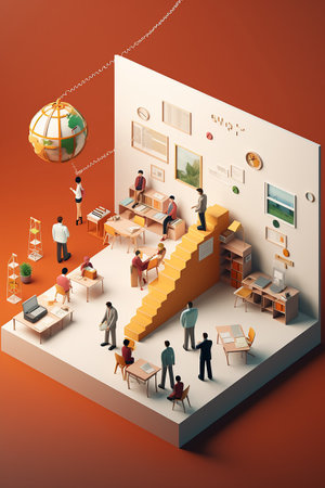 3D International Day of Education minimalist diorama, isometric wide angle