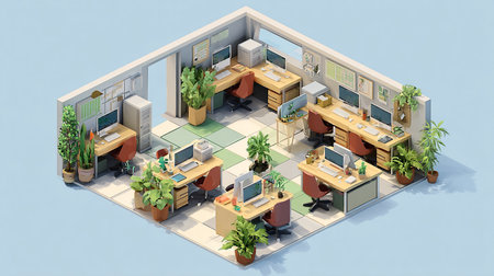 3d isometric office interior concept - 3d illustration of working space