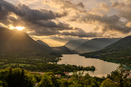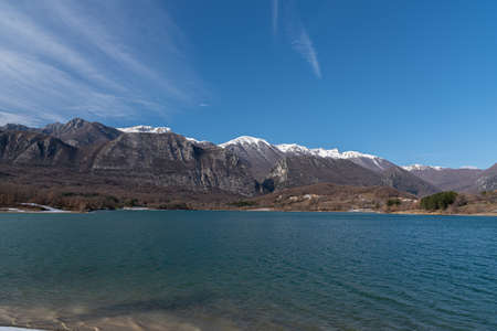 Castel San Vincenzo, Isernia, Molise, Italy. The lake. It is an artificial reservoir built at the end of the fifties for hydroelectric purposes. It occupies an area of 6,140 km².