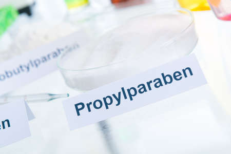 Noxious additives in cosmetics. Laboratory with chemical substances.