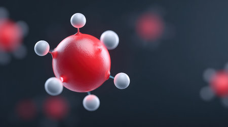 Vivid molecular design showcasing a red sphere and white atoms, capturing the essence of scientific exploration and abstract representation in modern technology.