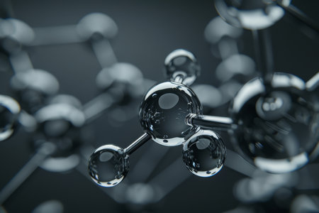 This abstract image features a detailed representation of molecular structures with interconnected atoms and colorful bonds, ideal for illustrating science and technology concepts.