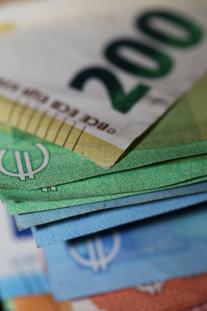 Bundled euro bank notes close up money with selective focus purchases business finances concepts paying power big size high quality value instant print