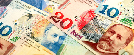 Georgian Lari currency money bills in big amount. GEL currency banknotes with different denomination close up