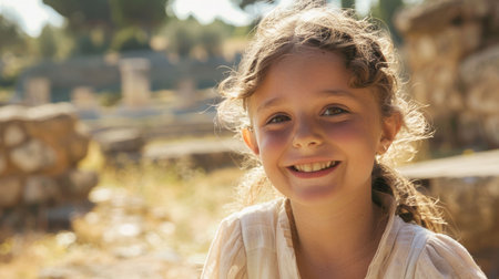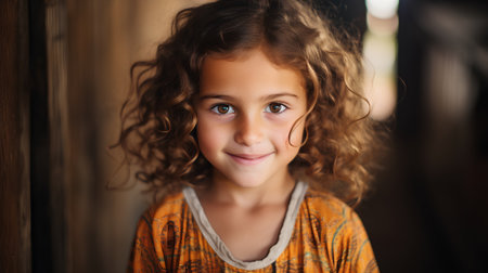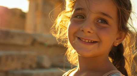 This charming girl, with her captivating curly hair and bright smile, radiates joy and innocence. The warm light enhances her playful spirit in the heart of Gaza.