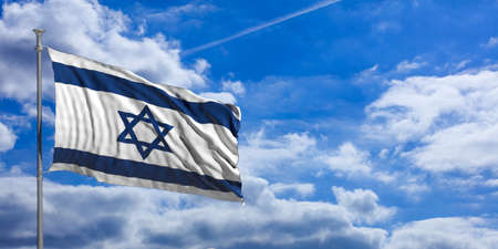 Israel waving flag on blue sky background. 3d illustration