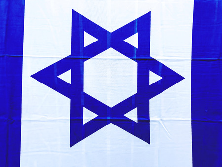a close up of a white and blue israeli flag.